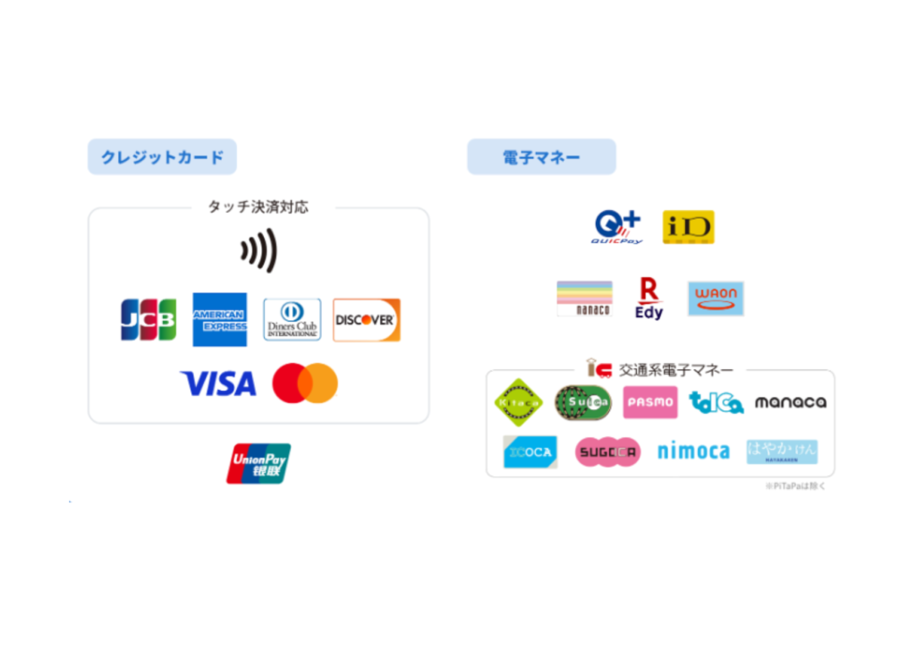 ・電子マネー(iD、QUICPay、Edy、WAON、nanaco、Suica・Pasmo等交通系電子マネー)